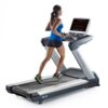 Two hand-grip heart rate sensors conveniently built-into the treadmill’s handlebars keep users in the